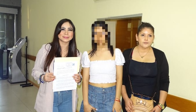 Lilia Olivares fue acompañada por Dafne, de 17 años y quien fue una de las jóvenes agredidas por policías durante la marcha y su madre, Diana Salazar quiénes exigieron justicia por la agresión.