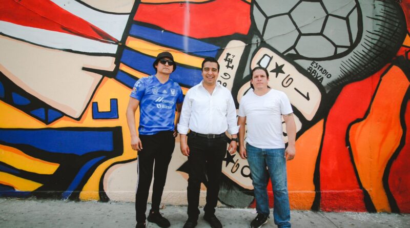 Ante un mural futbolero pintado sobre la avenida Perimetral Oriente, el Munícipe se reunió con Samuel Reyes y Rolando Israel Elizondo “El Pañales” para unirse por una fiesta futbolera, donde se disfrute en paz y sin agresiones.