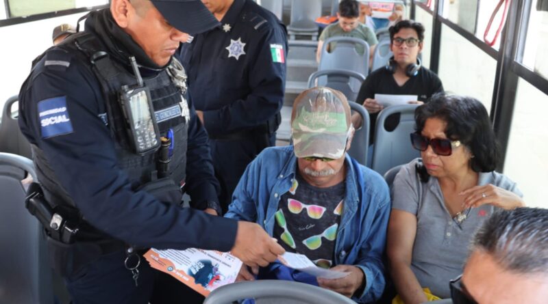 Como parte de la acción “Transporte Seguro” los policías entregan a los pasajeros del transporte público folletos con medidas para prevenir ser víctimas de algún delito.