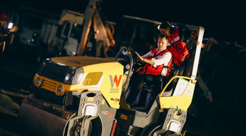 Primero manejó una retro excavadora para retirar la carpeta asfáltica dañada y luego una aplanadora de rodillo con la que compactó la carpeta nueva.