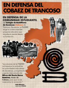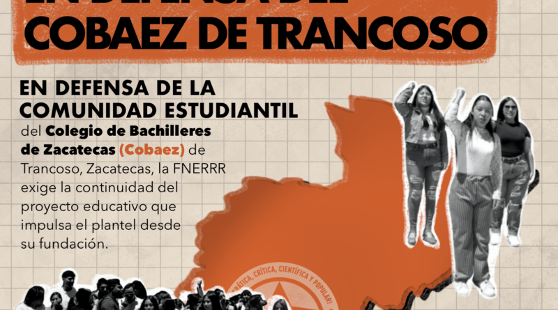 En defensa de la comunidad estudiantil del Colegio de Bachilleres de Trancoso, Zacatecas (Cobaez), y del proyecto educativo integral que impulsa el plantel desde su fundación, jóvenes de la Federación Nacional de Estudiantes Revolucionarios “Rafael Ramírez” (FNERRR) anunciaron en rueda de prensa una serie de acciones a nivel nacional para los próximos días.