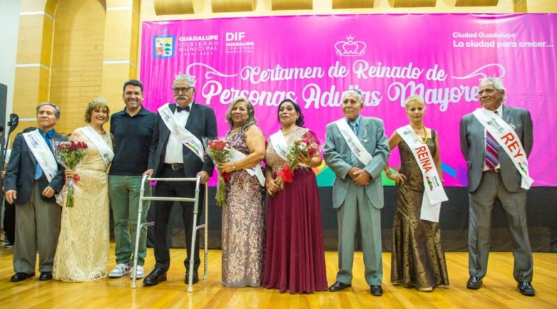 Al acompañar a las abuelitas y abuelos que participaron en el Certamen de Reinado de las Personas Adultas Mayores 2023, el Presidente del DIF Guadalupe, Tomás Montoya, coronó al Rey y la Reina de este año.
