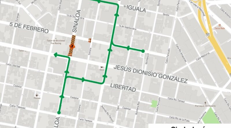 Las alternativas para quienes circulan por la calle Sinaloa son: para continuar hacia el norte, al llegar a la calle Libertad dar vuelta hacia la derecha (oriente) hasta Chiapas, continuar hasta Iguala y de ahí seguir hacia el poniente.