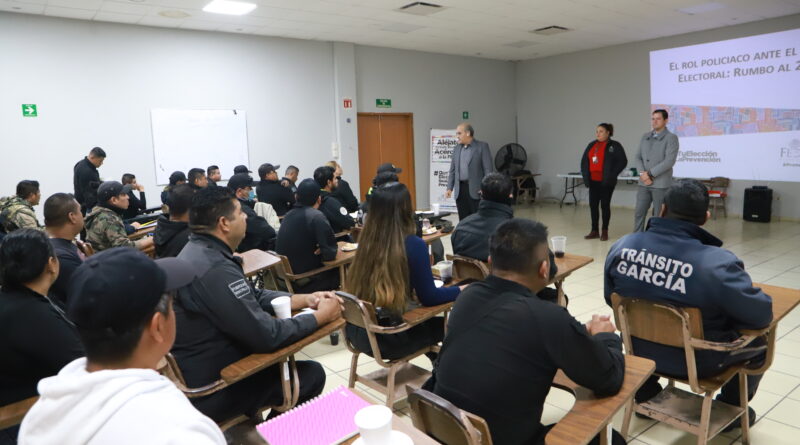 Ante la cercanía del proceso electoral en el país, elementos de la Institución de Policía Preventiva de García asistieron al curso ofrecido por el Municipio, e impartido por la Fiscalía Especializada en Delitos Electorales.