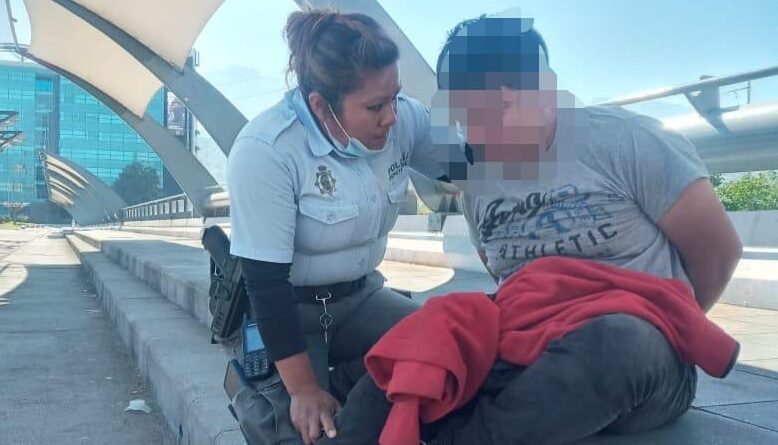 Un joven que tenía intenciones de quitarse la vida fue apoyado por oficiales de Policía de Monterrey, en el Puente Multimodal.