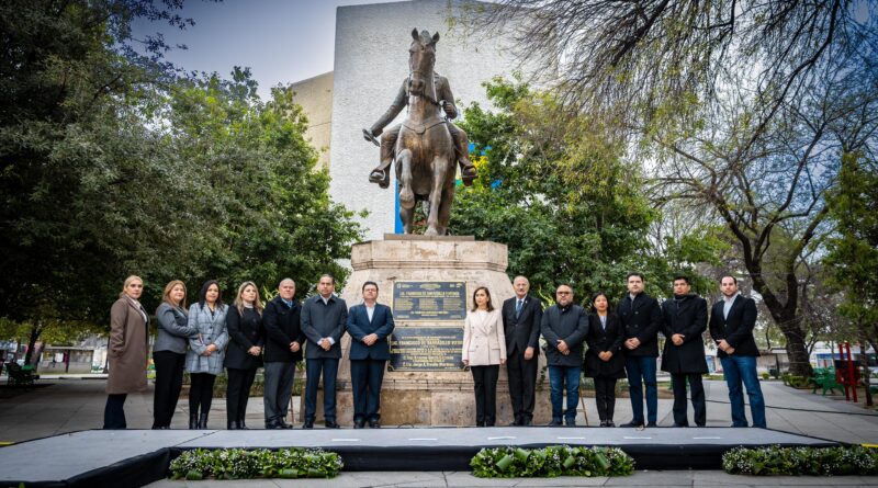 En la celebración en la Plaza Principal, la Presidenta Municipal montó una guardia de honor en la estatua de Francisco de Barbadillo y Vitoria, en compañía de Secretarios, Regidores, el cronista Erasmo Garza y Monseñor Juan Carlos Castillo.