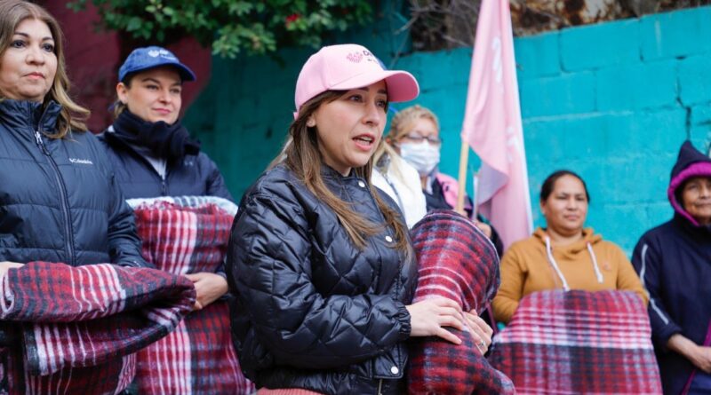 En un recorrido casa por casa de la Colonia Libertadores, García de Colosio repartió más de 500 cobertores.