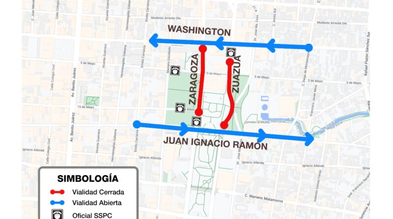 Además, se informó que también será cerrada la vialidad en 5 de Mayo y Escobedo.