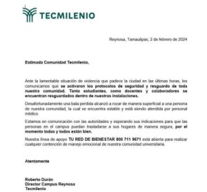 “Que ahora, además, haya resultado herido un muchacho, estudiante, ajeno a los hechos y a esos grupos, marca un nuevo nivel de violencia en el Tamaulipas”, dijeron en un comunicado difundido en redes ciudadanos tamaulipecos.