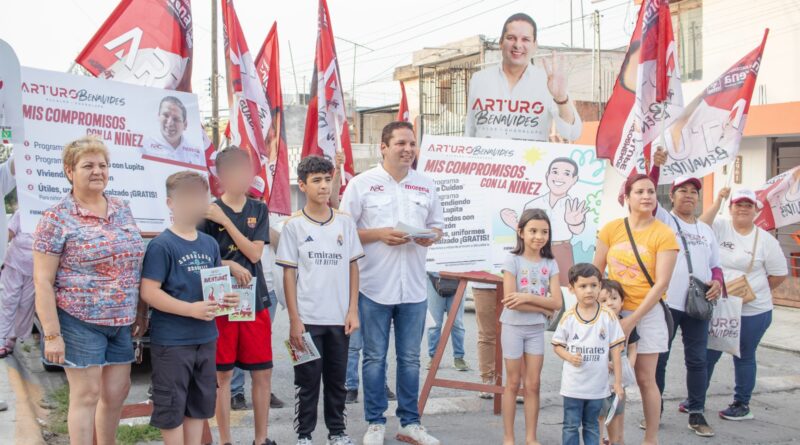 Con el compromiso firme de dotar de útiles, uniforme y calzado gratuitos para la niñez y juventud guadalupense; Arturo Benavides, candidato de Morena a la alcaldía de Guadalupe, presentó su propuesta a estudiantes de primaria y secundaria en la colonia Lomas de San Roque.