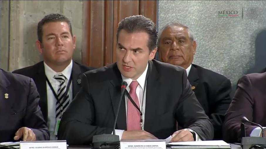 Ante el Presidente de la República, Enrique Peña Nieto, Gobernadores del país, integrantes del gabinete de seguridad federal y miembros del mencionado Consejo, De la Garza Santos habló de la importancia de contar con un Modelo Homologado de Justicia Cívica, Buen Gobierno y Cultura de la Legalidad, donde destacó la obligación municipal de mediar e intervenir en las pugnas entre vecinos.
