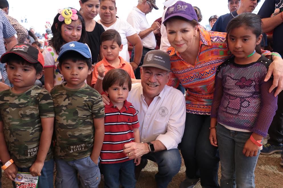En un ambiente de fiesta, más de 10 mil niños, acompañados de sus padres, se divirtieron en grande durante el evento organizado por la Presidencia Municipal y el Sistema DIF Matamoros, con motivo de festejar el Día del Niño, en el parque de beisbol Felipe (Brazo Fuerte) Leal.