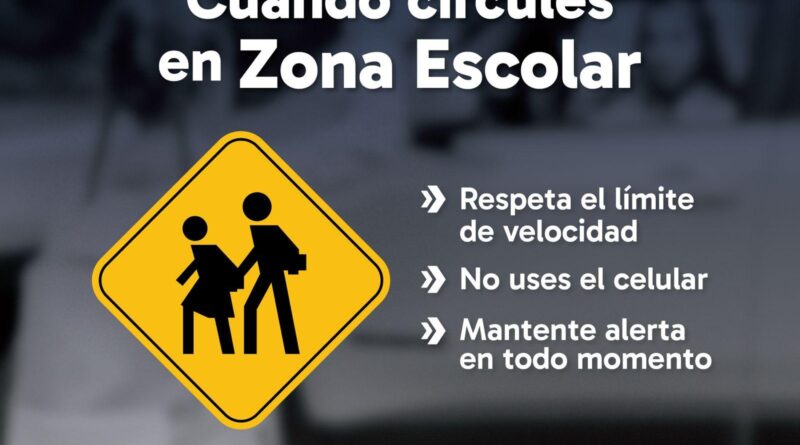 Las autoridades municipales exhortan a respetar el límite de velocidad de 30 kilómetros por hora en zonas escolares de 7:00 a 9:30 horas; de 11:30 a 14:30, y por la tarde de 16:30 a 18:30 horas.