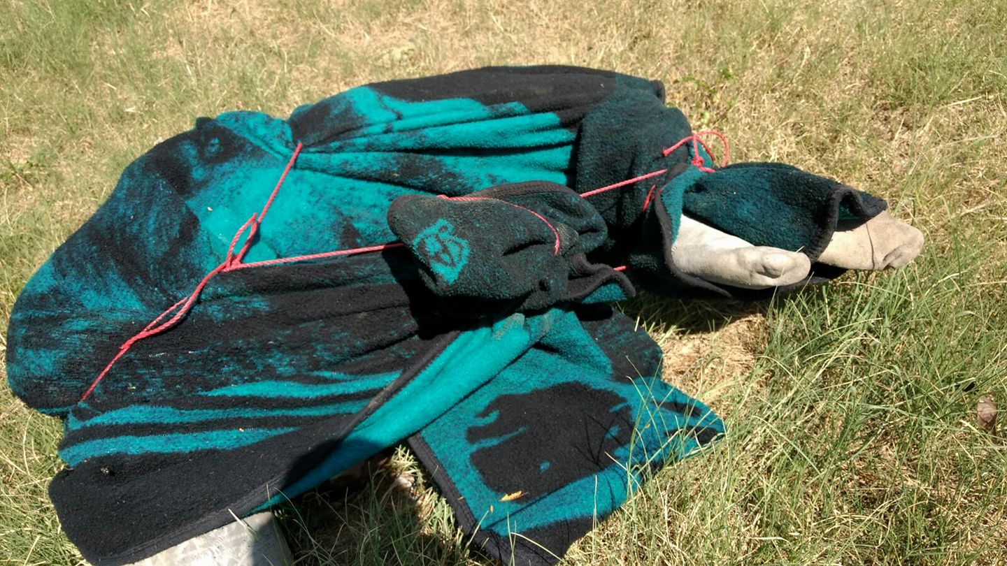 Los oficiales lograron ubicar el cuerpo envuelto a unos 50 metros hacia el interior del terreno, estaba amarrado con un cordón rojo y sobresalían los pies.