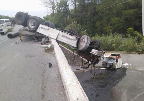 La unidad de carga pesada, que transportaba tubos de acero, era conducida por Jorge Alfredo Cantera Ontiveros, de 34 años, quien por fortuna sólo resultó con algunos golpes y pudo salir por su propio pie de la cabina.