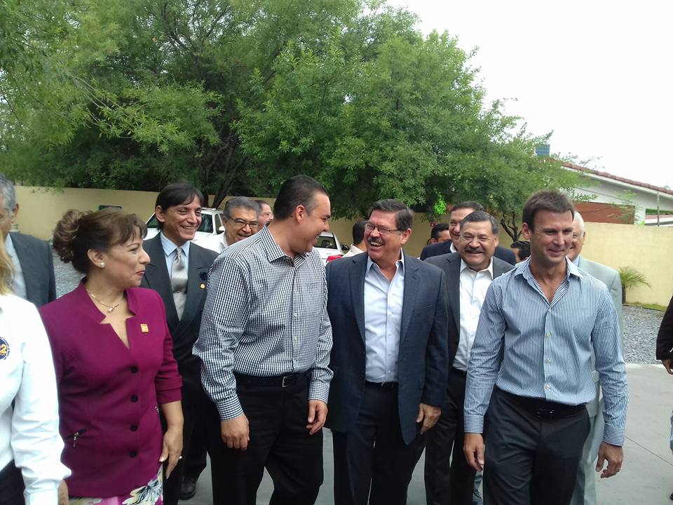 El rector Rogelio Garza y el alcalde Heriberto Treviño acompañados de la coordinadora del plantel María Soledad Téllez presiden la ceremonia oficial.
