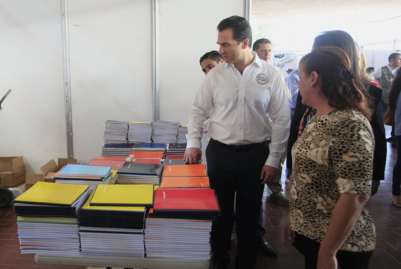 Los funcionarios recorrieron los módulos que ofrecen a los padres de familia artículos de papelería, libros, mochilas, zapatos, tenis, y uniformes, entre otras cosas.