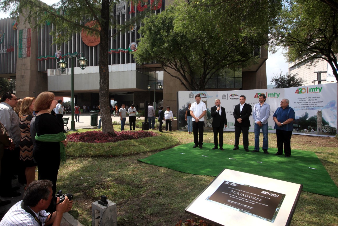 Como parte de los festejos de la fundación de Monterrey, el Ayuntamiento regiomontano presentó hoy el proyecto del monumento conmemorativo al 420 aniversario de la ciudad, que se colocará en el jardín norponiente de la Plaza Zaragoza, frente al palacio municipal.
