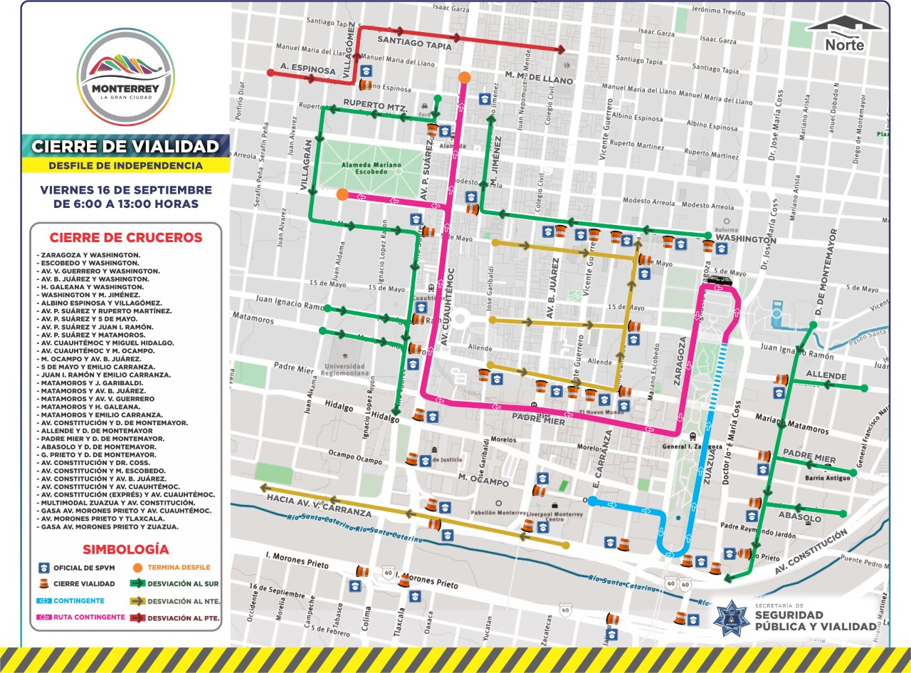 Con el fin de salvaguardar la seguridad de los participantes y asistentes al desfile cívico-militar que se realizará el próximo viernes con motivo del Día de la Independencia de México, el Municipio de Monterrey aplicará cierres viales en el centro de la ciudad.