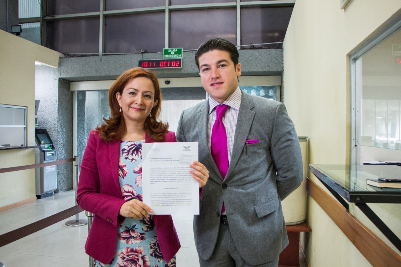 Los diputados Samuel García y Mariela Saldívar acudieron a la oficialía de partes a promover la adición de un párrafo del artículo 81 de la Ley de Obras Públicas donde prohíbe abrir al público alguna obra si no ha sido debidamente entregada al Estado o Municipio.