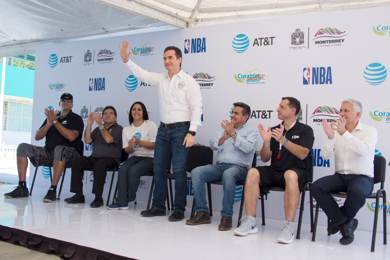 El evento fue encabezado por Alcalde de Monterrey, Adrián de la Garza quien estuvo acompañado de Ximena Gómez, Directora de Asuntos Públicos de AT&T; Armando Reza, Director de Corazón Urbano A.C.; Adrián Álvarez, Representante de la NBA México, Horacio Llamas, ex jugador de la NBA y de autoridades escolares.