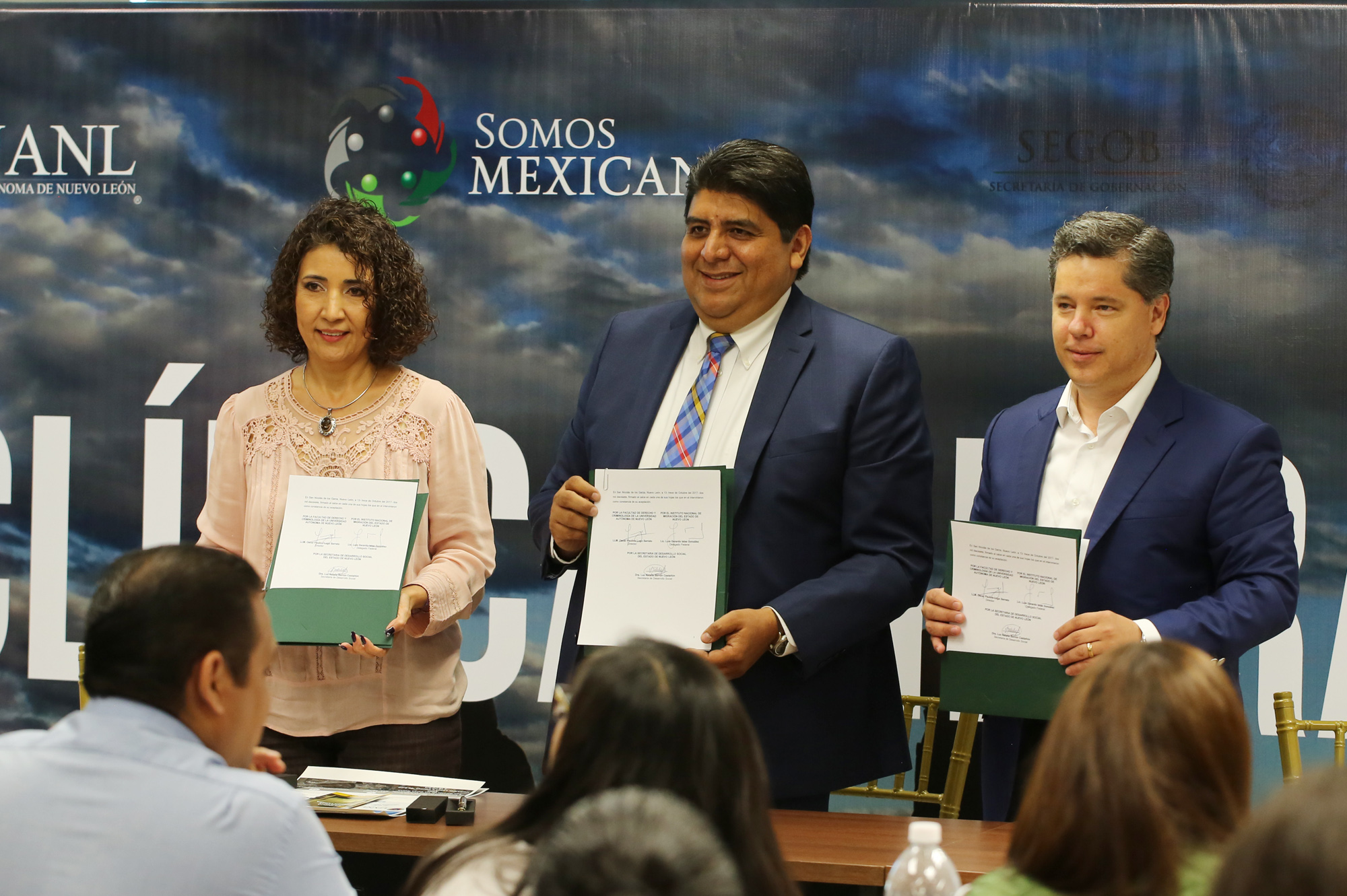 La creación de la Clínica Migratoria se oficializó mediante la firma de convenio suscrito por el Director de la Facultad de Derecho y Criminología de la UANL, Oscar Lugo Serrato; el Delegado del INM, Luis Gerardo Islas, y la Secretaria de Desarrollo Social del Estado, Luz Natalia Berrún Castañón.