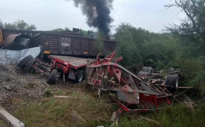 El primero ocurrió a las 15:30 horas de este jueves en la Carretera Laredo a la altura Ejido el Cenizo. De acuerdo a informes de autoridades el conductor del Kenworth placas de circulación 710-DM5 color blanco con dos remolques tipo tolva de la empresa Tynsa intentó ganar el paso del ferrocarril.